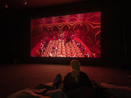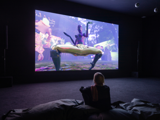 Jacolby Satterwhite verknüpft Zitate der westlichen Kunstgeschichte mit afro-futuristischen Visionen, Mythen und nicht-westlichen Ritualen sowie persönlichen Erinnerungen an seine Mutter. Einflüsse aus zeitgenössischem Tanz und queerer Club-Kultur lassen Satterwhites Videoinstallationen zum Leben erwecken und durchbrechen auf kraftvolle und visionäre Weise die Grenzen zwischen Geschlecht und Ethnizität.