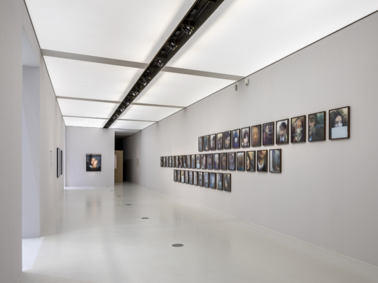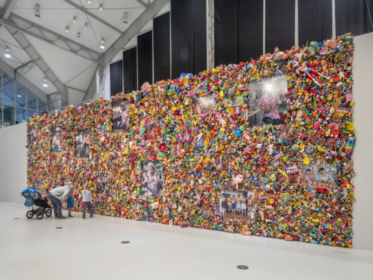 Das Herzstück der Ausstellung im Haus der Photographie ist Wolfs beeindruckende Wandinstallation The Real Toy Story (2004–2018). Über 20.000 Billigspielzeuge »Made in China« bilden den Rahmen für Porträtfotos von Arbeiter*innen in chinesischen Spielzeugfabriken. Die schüchternen und manchmal resignierten Gesichter der einzelnen Personen stehen in scharfem Gegensatz zur überwältigenden Anzahl heiter-bunter Spielzeuge aus der industriellen Massenproduktion.