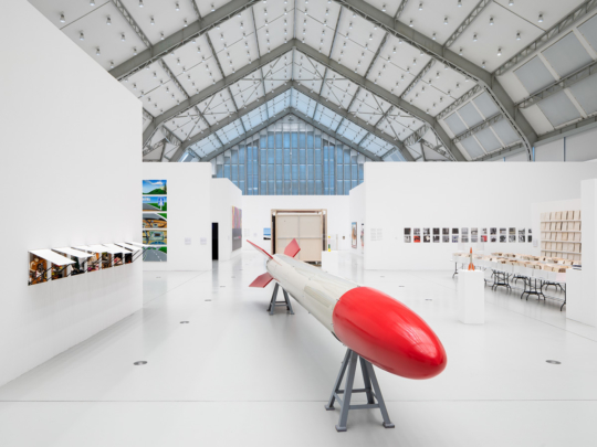 Modern classics such as Peter Saville’s famous dysfunctional giant billboard promoting New Order’s album Technique and Emil Schult’s paintings, which formed the basis for the cover of Kraftwerk’s 1974 album Autobahn, will be presented alongside stunning 3D video installations such as Cyprien Gaillard’s Night Life (2015) and Britta Thie’s unsettlingly functional Powerbanks sculptures.