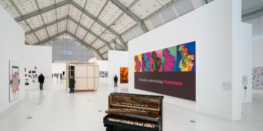 In addition to the exhibition, Albert Oehlen, Rosemarie Trockel, and Hans Ulrich Obrist will present concerts in the Elbphilharmonie under the title HYPER! SOUNDS featuring Arto Lindsay, Daniel Blumberg, Kristof Schreuf, Den Sorte Skole, GAS, and Kreidler, among others. HYPER! will open on 28 February 2019 with a concert by Freiwillige Selbstkontrolle (F.S.K.) under the theme “A pile of shit and a smashed piano,” in which the rock music tradition of destroying electric guitars on stage will be combined with the Fluxus practice of destroying pianos. Additional concerts with Marcel Dettmann, Asmus Tietchens, and André Vida are planned.