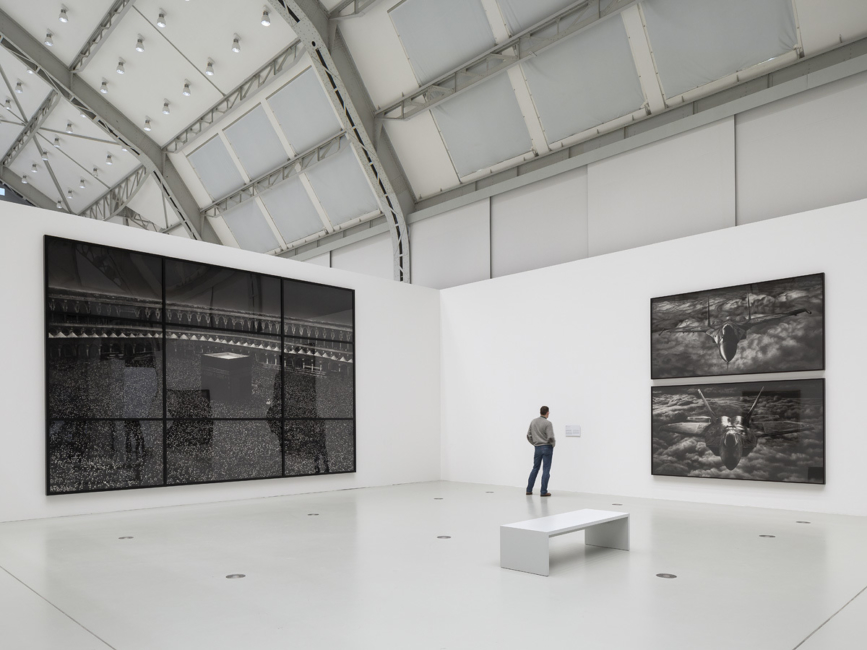 In the eighteenth and nineteenth centuries, Goya chose the medium of printmaking for his socially critical series of works and haunting images of war. Beginning in the 1920s, Eisenstein dealt with Russian history in classic films such as »The Battleship Potemkin« (1925) and »Ivan the Terrible« (1945). The New York-based artist Robert Longo explores burning contemporary issues such as terrorism, refugee movements, modern warfare, and symbols of power in his drawings ranging up to 7.5 meters in size.