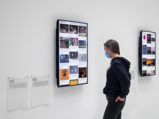#ProtestsGoViral is based on a selection of viral hashtags on Instagram, the most popular image-based online platform in the United States. The posts shown are updated by the minute, in keeping with the fast pace of social media posts. This compilation thus offers direct insight into various pressing areas of political activism in the United States.
