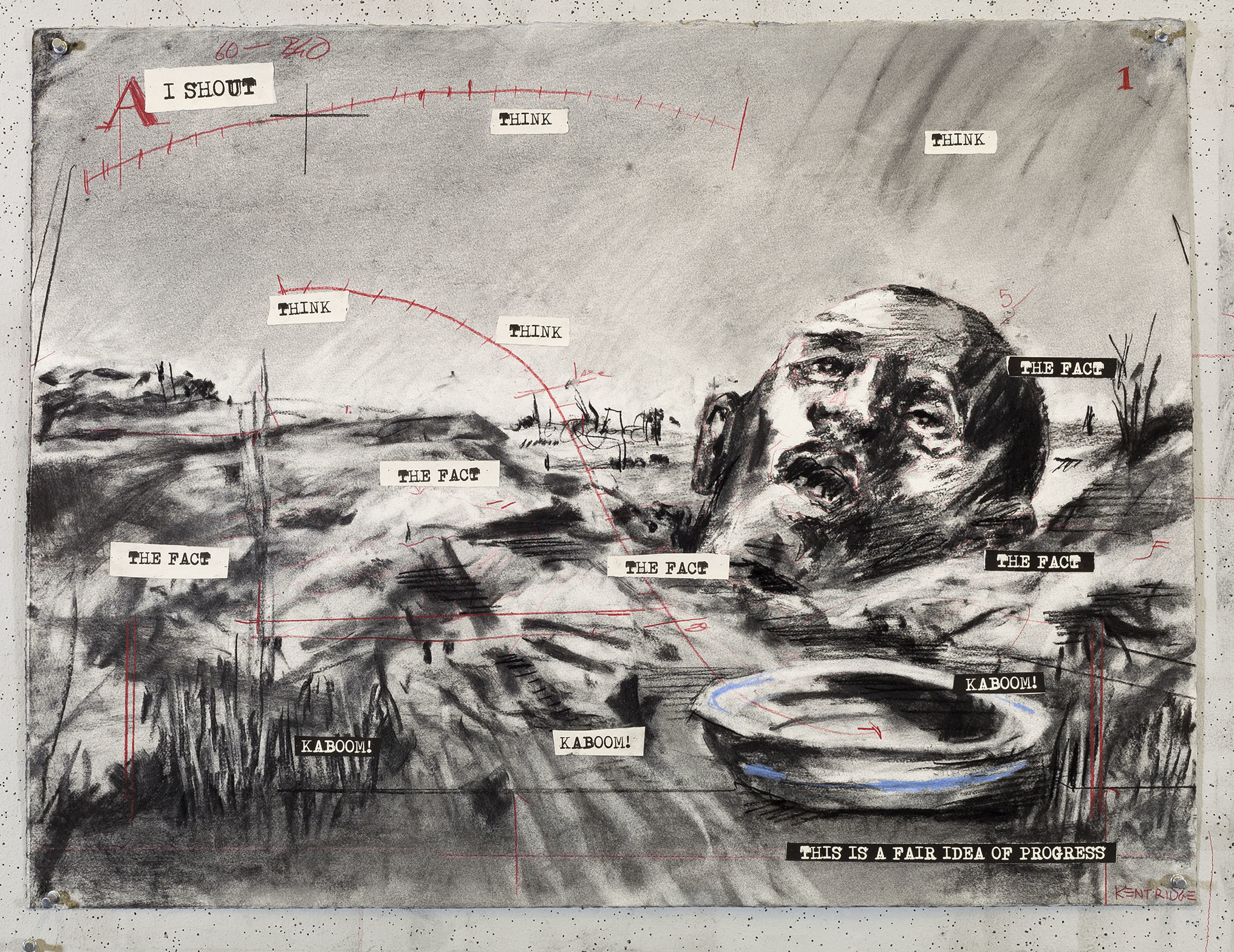In der Kunst von Kentridge ist alles in Bewegung. Nichts ist gewiss. Jedes Stadium ist vorläufig. Beim Hinzufügen und Ausradieren hinterlässt die Kohle Spuren – Spuren der Tage und Monate, die er an den Zeichnungen gearbeitet hat. Die Filme werden zu Protokollen über das Vergehen der Zeit. Denken in Zeitlupe. Verdichtete Zeit.