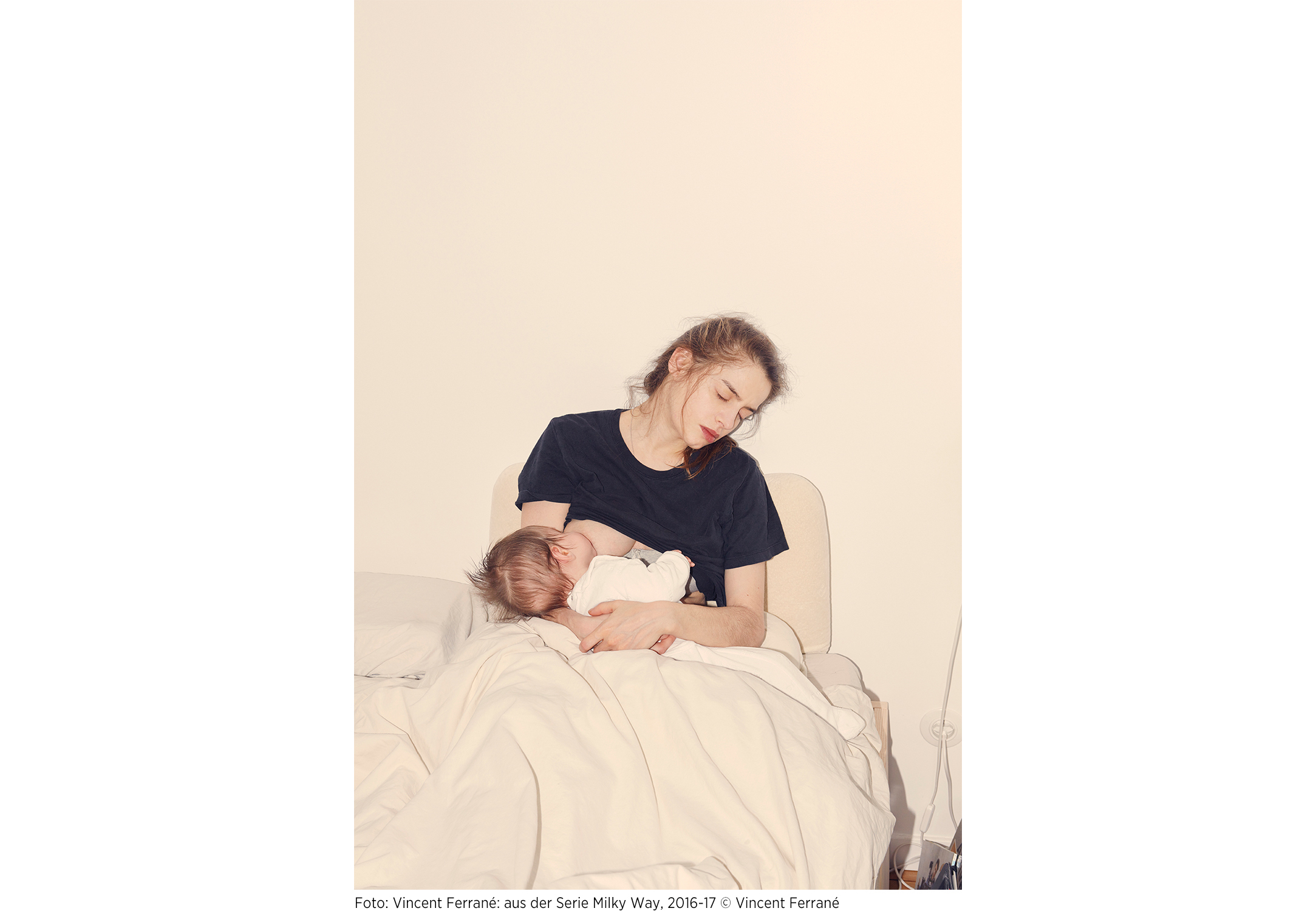 Auffällig ist, welches Familienmitglied im Ausstellungsverlauf erst recht spät auftritt: der Vater nämlich. Die ersten drei gezeigten Positionen drehen sich fast allein um das Verhältnis von Mutter und Kind: Katharina Bosses Serie A Portrait of the Artist as Young Mother thematisiert den Umstand, dass mit jedem Kind auch eine Mutter auf die Welt kommt, Siân Davey ergründet in den Aufnahmen von Teenagern ihr Dasein als die Mutter ihrer Stiefkinder, Vincent Ferrané zeigt in Milky Way seine erschöpfte Freundin beim Stillen des gemeinsamen Kindes. Er selbst bleibt hinter der Kamera verborgen. Es sind hier die Mütter, die Nahrung spenden, Sorge tragen und die Beziehungen pflegen, während die Väter lediglich zu zeugen scheinen und sich danach auf die Position des Beobachters zurückziehen.