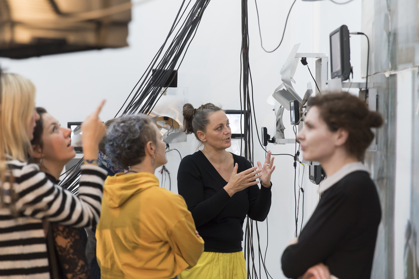 Angela Holzhauer betreibt in Hamburg seit 16 Jahren eine Galerie für zeitgenössische Kunst, ist freie Journalistin und führt seit vielen Jahren durch die Sammlung Falckenberg.