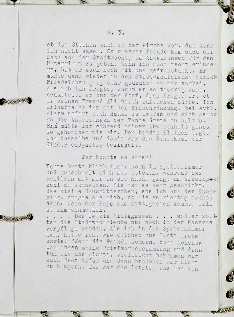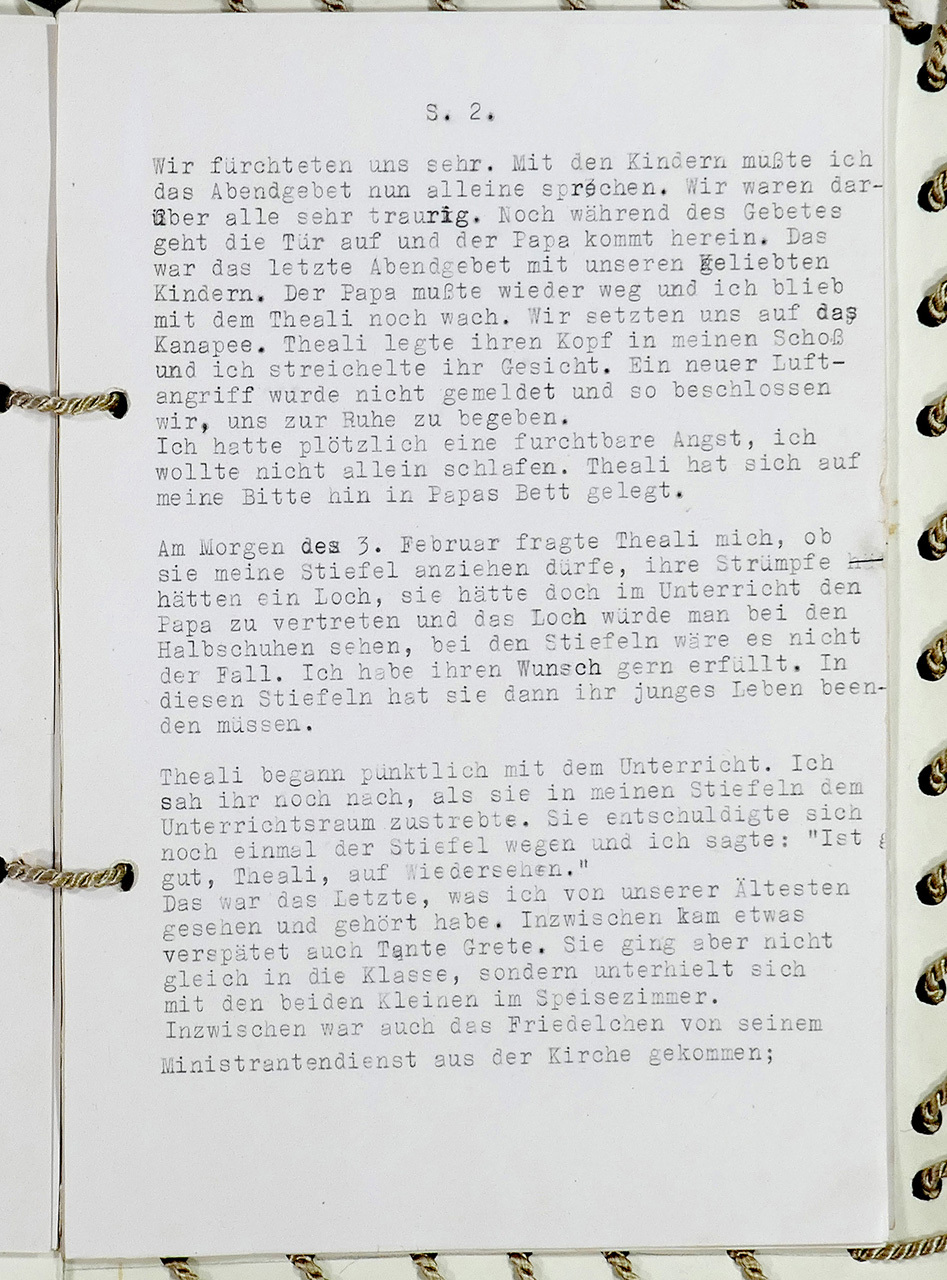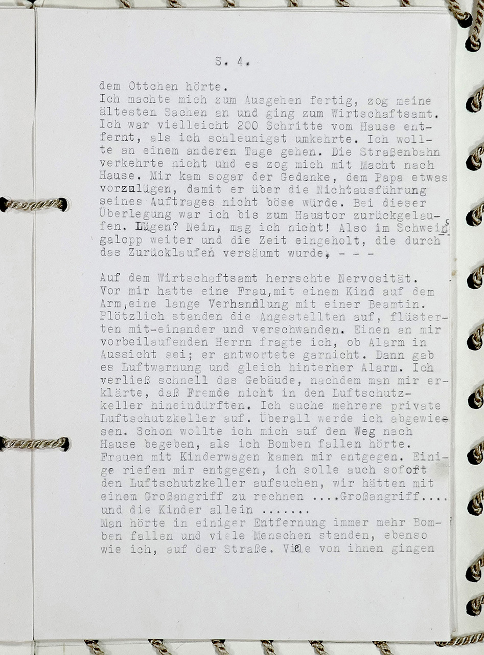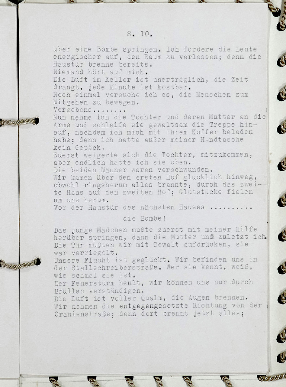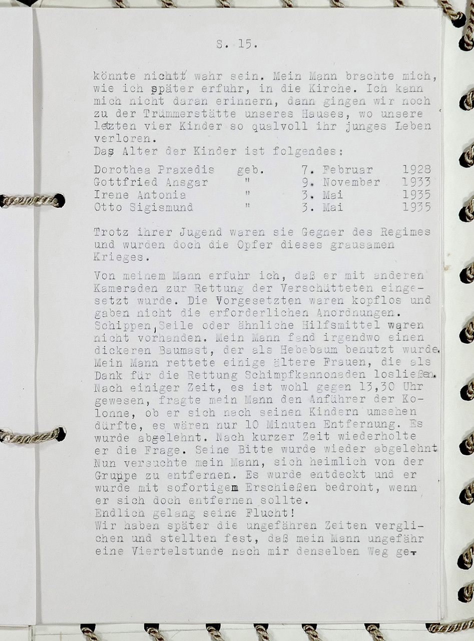 Auf der Suche nach einem klassischen Holz-Aktenschrank mit Rolltür wurden reproducts-Mitarbeitende 1997 im Zille-Hof Berlin fündig. Im Boden des Aktenschrankes fand sich später dieses Heft. In dem 1952 verfassten Bericht schildert eine Mutter, wie sie bei dem Bombenangriff vom 3. Februar 1945 auf Berlin alle ihre Kinder verliert.