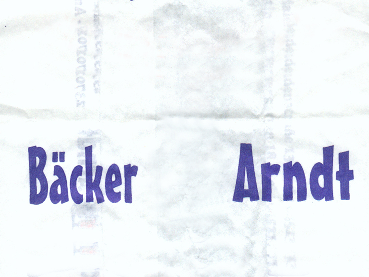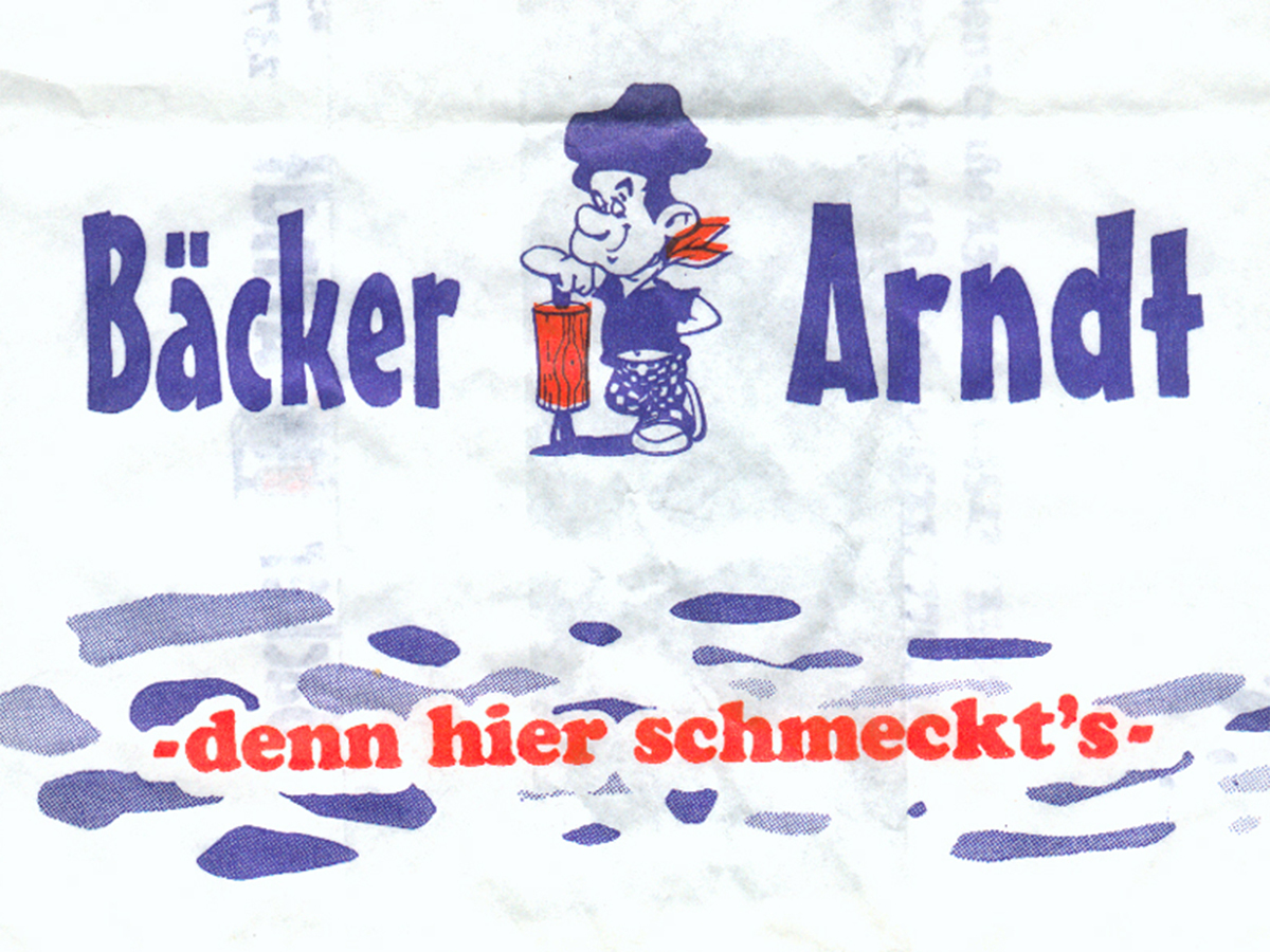 Er lässt die Tüte beschriften mit: Bäcker Arndt.