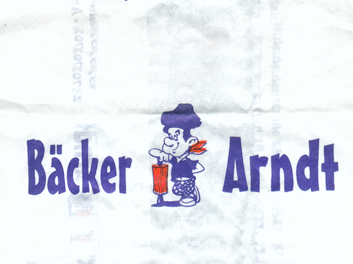 Somit ist unmissverständlich der Schöpfer des Inhalts dieser Tüte für jeden klar ersichtlich: Bäcker Arndt!