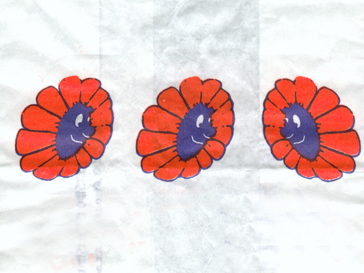 Flankiert wird sie von zwei weiteren Blumen des Bösen und soll wohl mit ihnen zusammen eine Art unheilige Dreieinigkeit bilden. Dies aber wird konterkariert durch die vom Moment bestimmte Konzeptlosigkeit des »Grafik-Designers«, der sich auf dieser Tüte verewigen durfte. »Mmmmh«, scheint er sich gedacht zu haben, »alle drei in eine Richtung gucken zu lassen ist irgendwie langweilig. Ich dreh’ einfach mal eine um!«