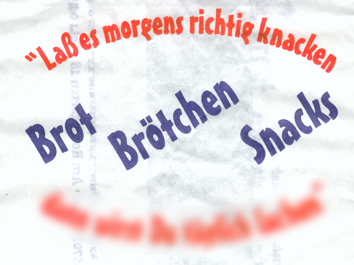 Um es kurz zu machen: hier wird endlich deutlich, was das grundlegende Konzept der Gesamtanordnung aller graphischen und typographischen Elemente auf dieser Brötchentüte ist: