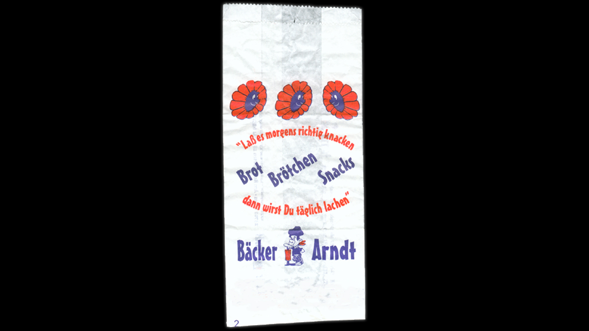 Was aber ist nun das Besondere an dieser Brötchentüte von Bäcker Arndt? Was fällt hier auf?