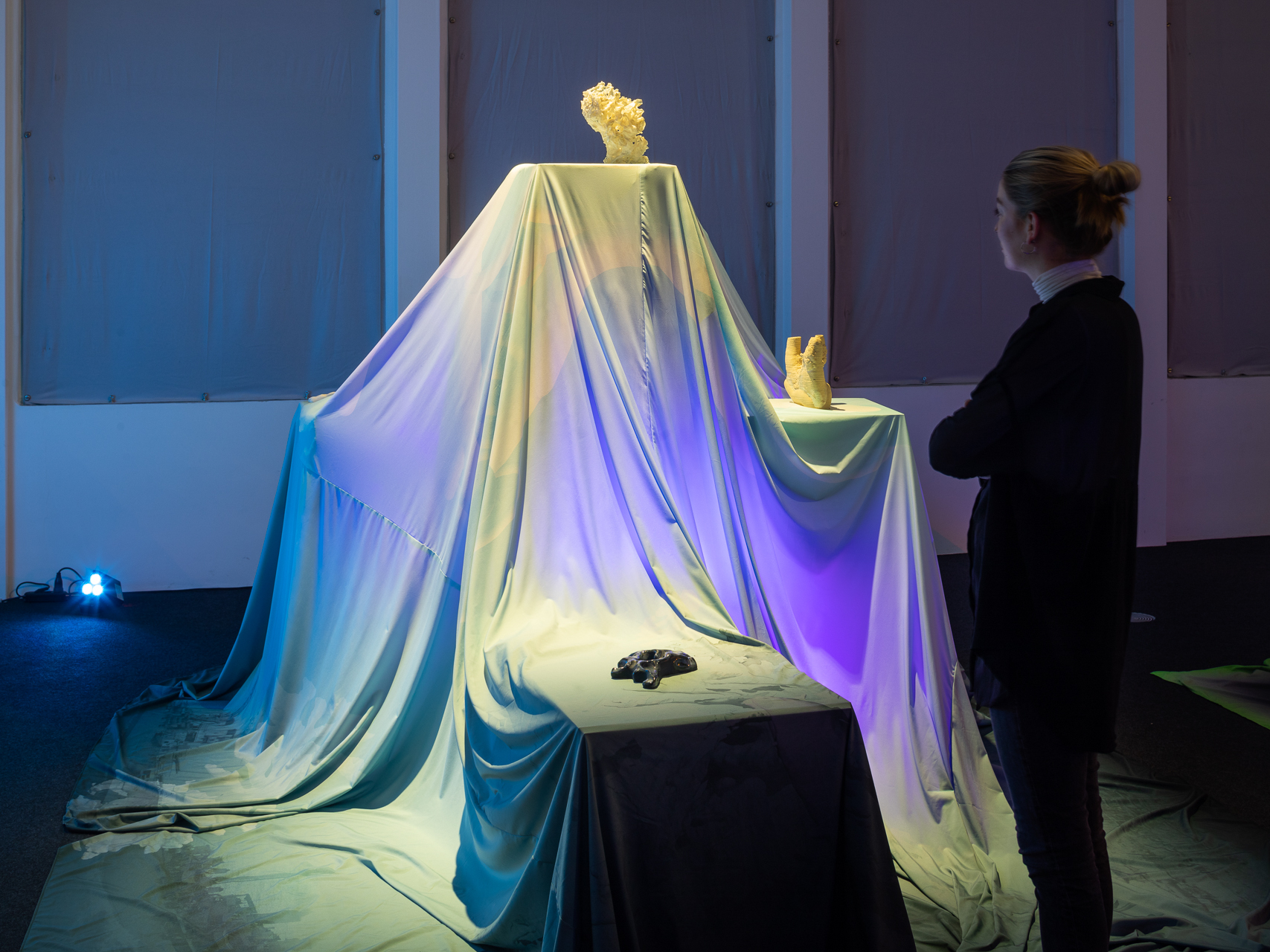 Die Arbeiten und Objekte, die ich produziere und zeige sind fiktionale Objekte. Jedes Objekt erzählt eine bestimmte Geschichte, über die ich in meiner Forschung stolpere. Zur selben Zeit kreieren die Objekte auch eigene Geschichten und Fiktionen um sie herum. Das ist der Teil, der neue Welten erschafft. Es geht nicht nur um eine wissenschaftliche Untersuchung, sondern auch darum, wirklich zu verstehen, was die Objekte über unsere Beziehung zu anderen Lebewesen und der Umwelt aussagen und wie wir unsere Existenz auf der Erde durch diese Mineralien und geologischen Formationen besser verstehen können. Auf diese Weise hinterfragen sie auch die Grenze zwischen dem, was wissenschaftlich, real und fiktiv ist.