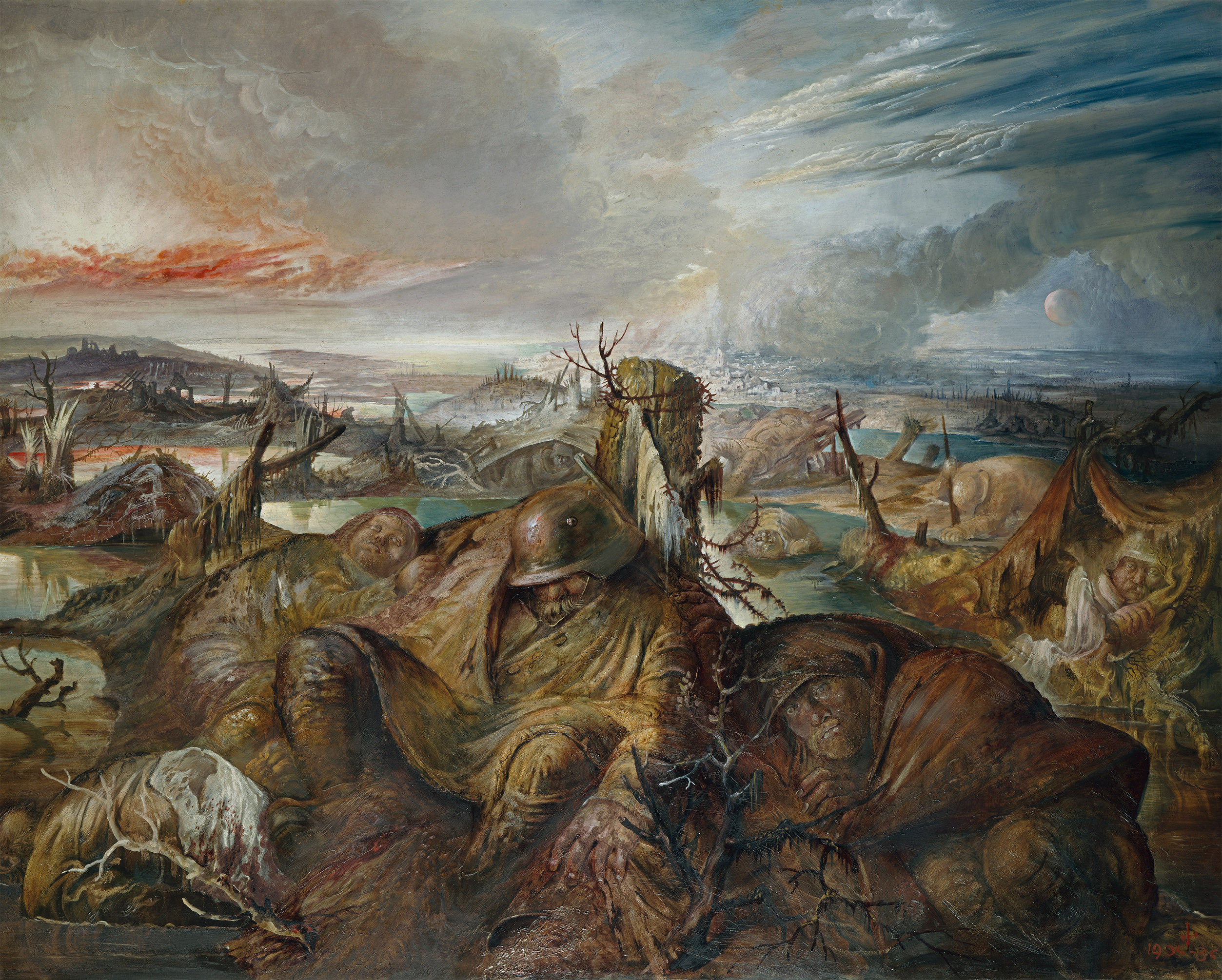Themen auch in sakrale Formate wie das Altarbild, das Großstadttriptychon und das große Triptychon Der Krieg und verleiht den abgründigen menschlichen Facetten damit