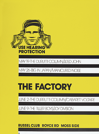 »Factory did not see itself in a contemporary art context though it was of course a significant moment in the legacy of Pop Art. The actual provenance of the name apparently lies in the irony of omnipresent 'Factory Closing’ signs across Manchester by the late 1970s – Tony Wilson’s friend and associate Alan Erasmus apparently thought it would be poignant to propose a ‘Factory Opening’!« –Peter Saville