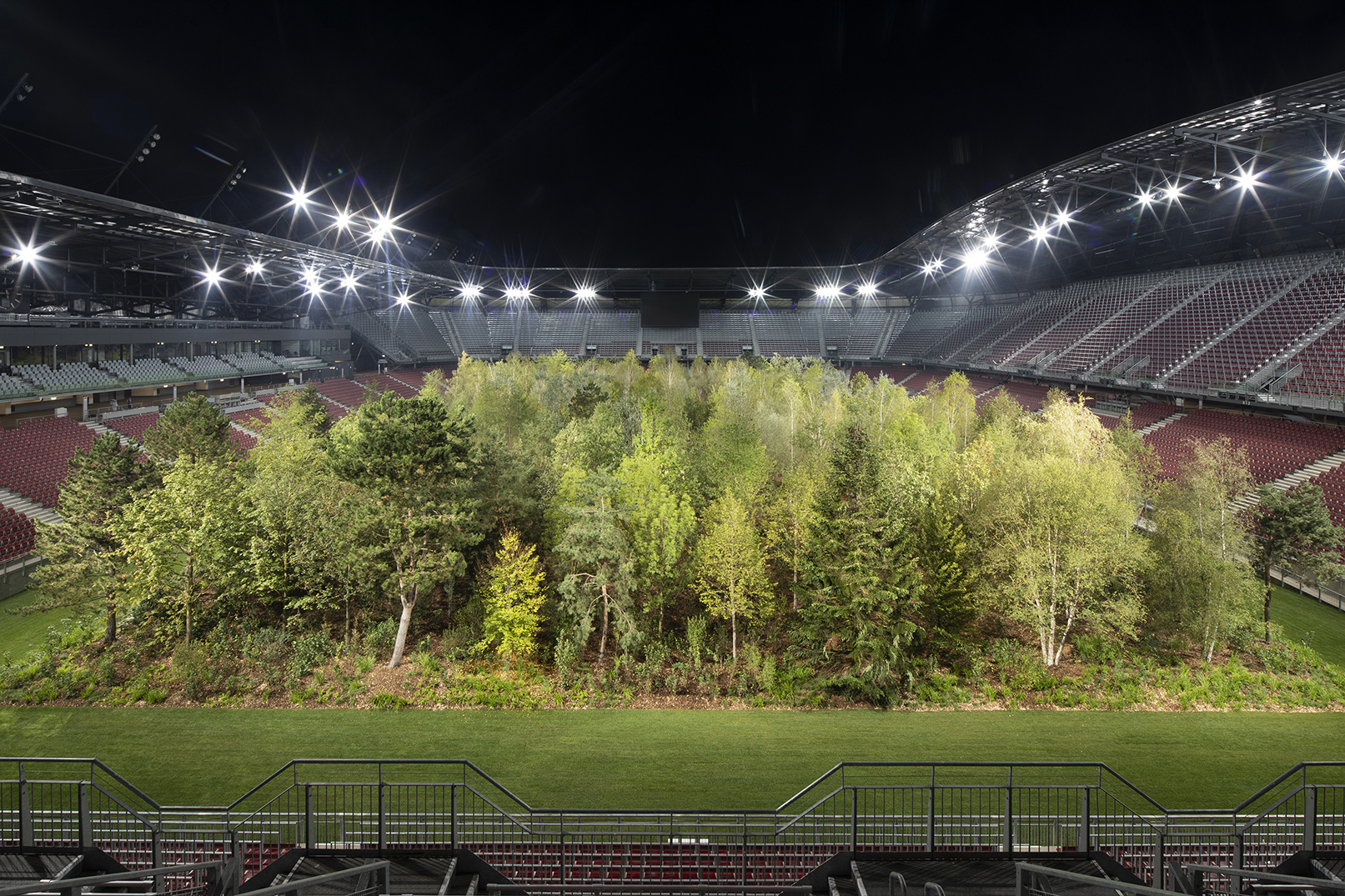 Im Wörthersee-Fußballstadion in Klagenfurt stehen noch bis Ende Oktober dort, wo sonst perfekt getrimmter Rasen wächst, rund 300 große Bäume: ein dichter Wald, von den Zuschauertribünen aus zu betrachten. Klaus Littmann, Veranstalter von Kulturprojekten, gab den Anstoß zu dem Projekt und organisierte die Finanzierung, Max Peintner, seit Jahrzehnten in der österreichischen Umweltbewegung engagiert, lieferte mit einer Zeichnung von 1971 (Die ungebrochene Anziehungskraft der Natur) die Vorlage, und Landschaftsarchitekt Enzo Enea sorgte für die Umsetzung.