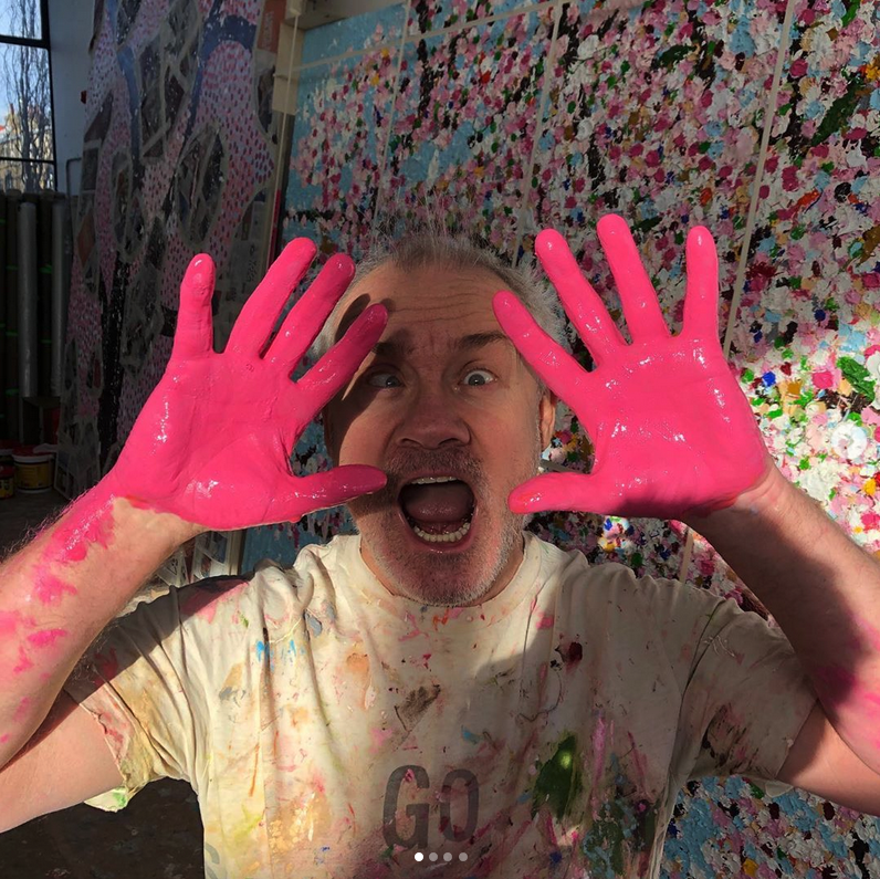 Er zeigt sich einsam im Atelier, während er expressiv-fröhliche Bilder von Kirschblüten malt, er erfreut seine Follower damit, dass er, sogar per Video, ihre Fragen beantwortet, er erinnert voll Pathos an Egon Schiele, der 1918 an der Spanischen Grippe starb, und er bietet eigens entworfene Herzen und Regenbogen zum Download, damit Eltern und Kinder Varianten davon basteln, in ihre Fenster hängen und sich so beim Pflegepersonal des National Health Service bedanken, das in der Corona-Krise Übermenschliches leistet.