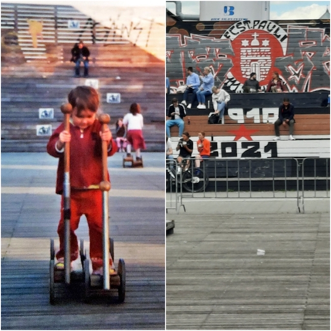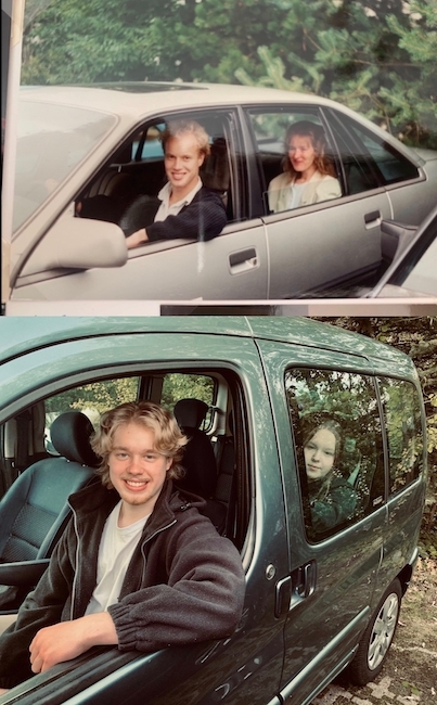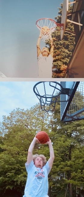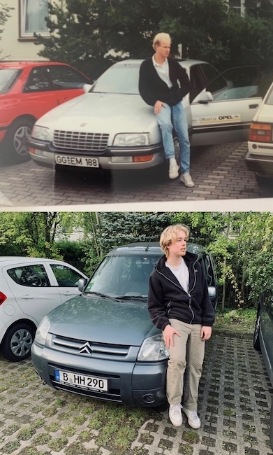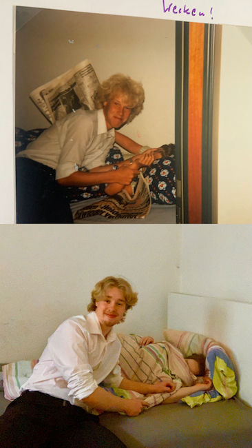 Mit dieser Serie möchte ich also ausdrücken, dass das Jugendleben meines Vaters in vielen Teilen mit meinem übereinstimmt. Doch durch die Nachstellung der Fotos in meiner Umgebung, wo ich wohne, möchte ich zeigen, dass ich die Fotos nicht eins zu eins kopiere, sondern sie auf mein Leben übertrage und dadurch auch zeige, dass nicht alles gleich ist.