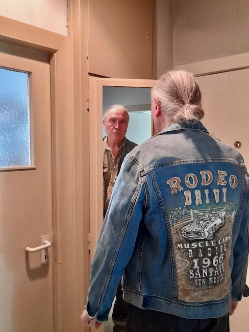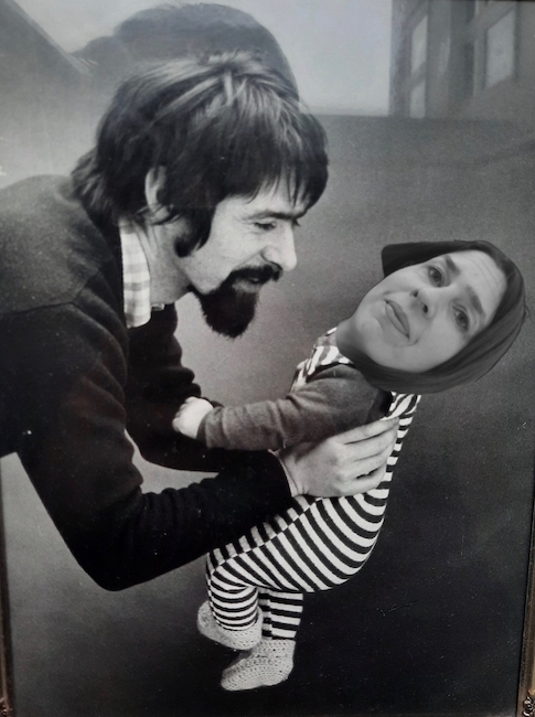 Sie handelt von Parallelen von seiner zu meiner derzeitigen Jugend. Teils sind es Nachstellung von Fotografien aus seiner Vergangenheit, teils habe ich mich aber auch an Überschneidungen unserer politischen Einstellung und der Sicht auf die Welt, die wir weitgehend teilen, inspirieren lassen.